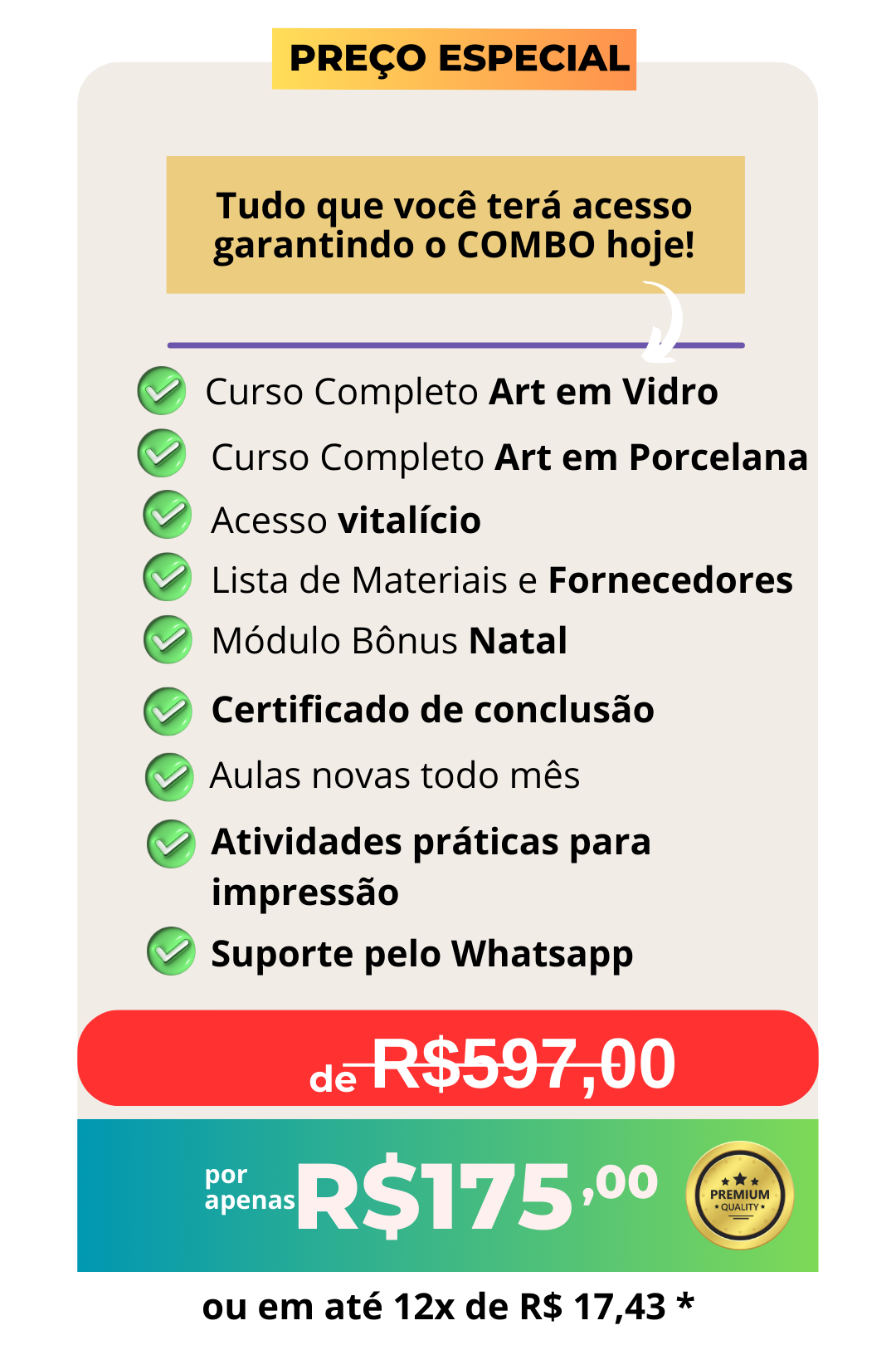 Nosso Curso Oferece Aulas Práticas para Iniciantes, Além de uma Lista de Fornecedores e Técnicas Valiosas para quem está começando do zero. Descubra Como Transformar a pintura em porcelana e vidro em Lucros Significativos, Podendo Alcançar até 10 Mil Reais por Mês!