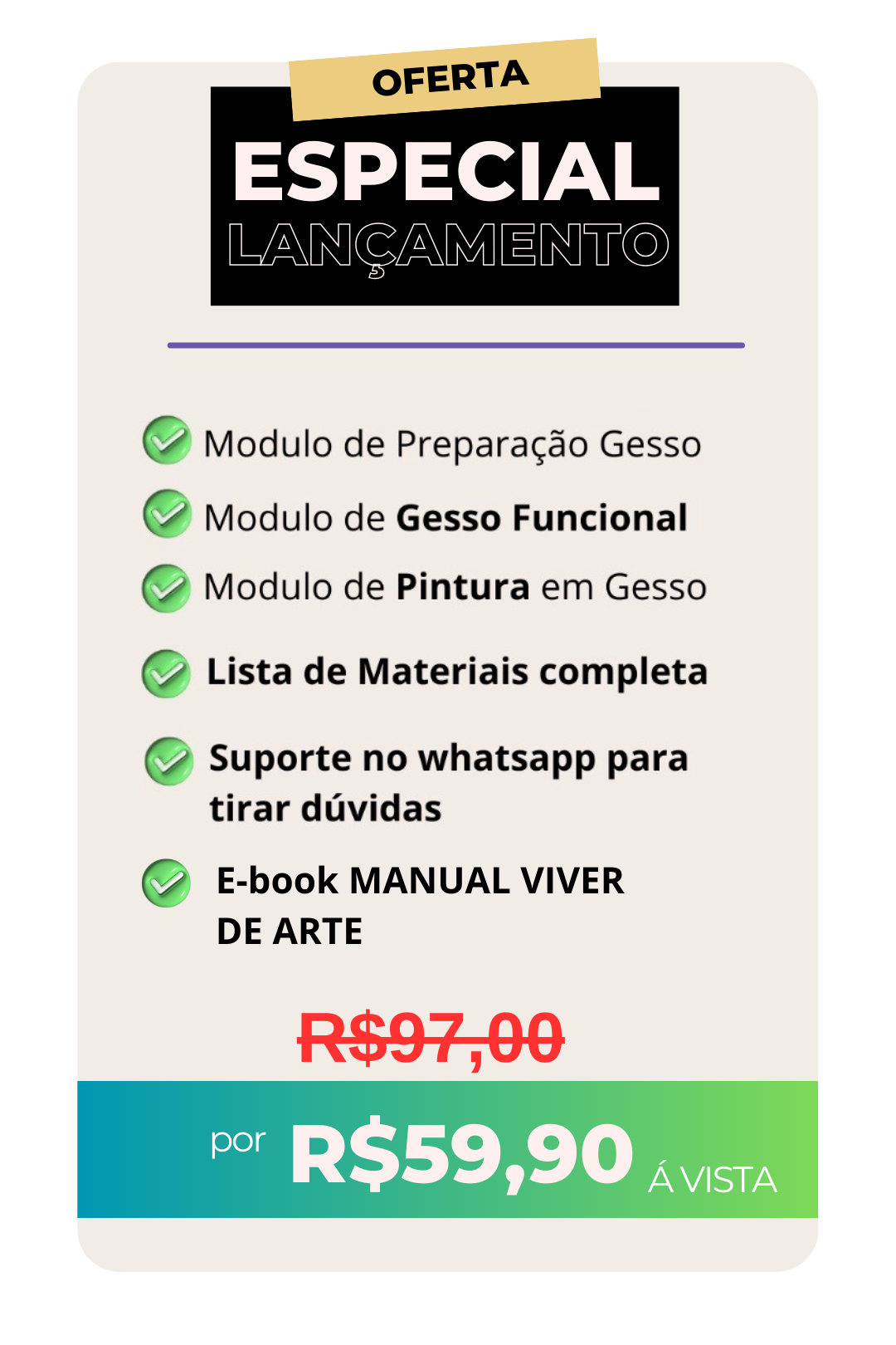 Nosso Curso Oferece Aulas Práticas para Iniciantes no gesso, Além de uma Lista de Materiais e Técnicas Valiosas para quem está começando do zero. Descubra Como fazer peças encantadoras com um dos materiais mais acessíveis e rentáveis da arte.
