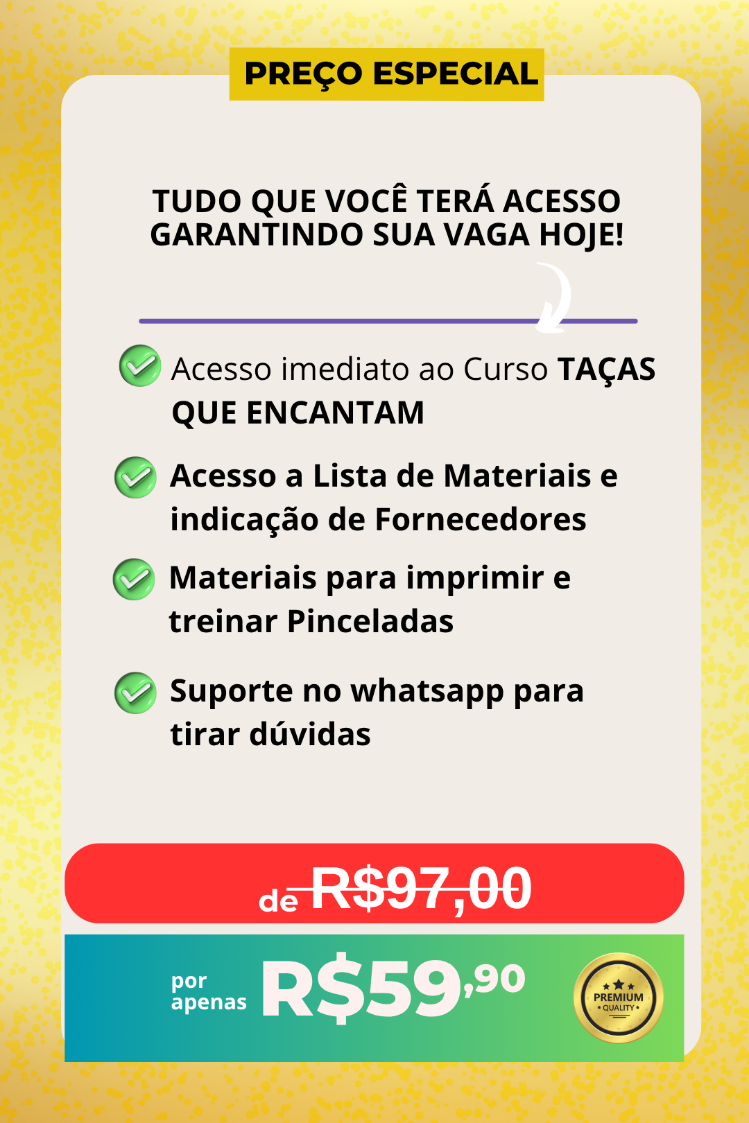 Aqui, você não vai encontrar técnicas complicadas ou aulas longas. A proposta é simples: te guiar passo a passo para criar suas primeiras taças decoradas com um acabamento bonito e delicado, desde o zero.